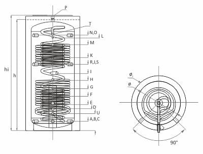Deze geavanceerde hygiëneboiler is uitgerust met een roestvrijstalen tapwaterspiraal en twee geïntegreerde warmtewisselaars, waardoor hij optimaal functioneert in installaties die gebruikmaken van meerdere warmtebronnen. De warmtewisselaars zorgen voor een efficiënte overdracht van thermische energie, waardoor het water sneller opwarmt en het energieverbruik wordt verlaagd. Dit maakt de boiler compatibel met verschillende verwarmingssystemen, zoals zonne-energie, warmtepompen, verwarmingsketels en cv-ketels, waardoor u maximale flexibiliteit krijgt bij de inrichting van uw verwarmingsinstallatie.